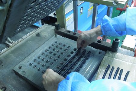 硅橡膠制品成型模具在上油壓模臺之前先洗模處理,特別是剛剛放電的新模具必須先噴砂處理。噴砂模具必須加熱到足夠的溫度,然后排料成型,并且在成型前必須噴灑脫模劑。帝博提醒,電鍍模具一定不要噴砂,包括樹脂砂噴射。
