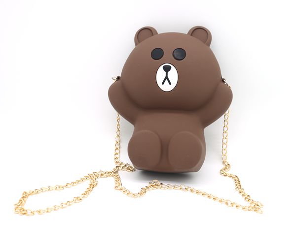 卡通小熊硅膠斜挎包五金時尚鏈條包包