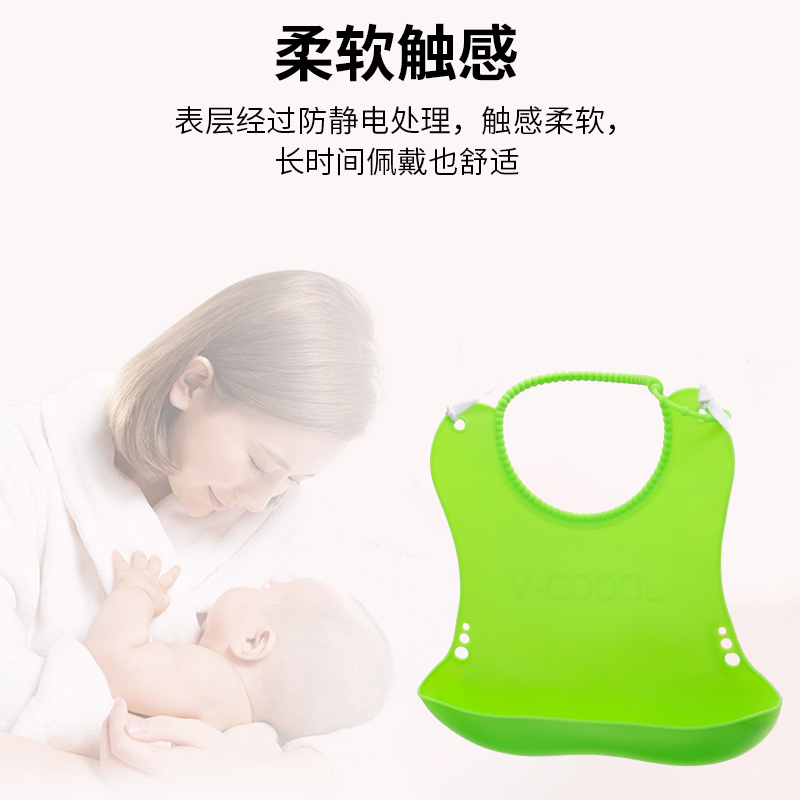 安全的硅膠材質(zhì), 讓您的寶寶愛上吃飯,一抹即凈,輕巧便捷,柔軟無(wú)痕,可啃咬食品級(jí)硅膠,不用擔(dān)心飯兜材質(zhì)被寶寶啃咬會(huì)對(duì)寶寶產(chǎn)生身體健康,我們帝博拒絕PBA不利材質(zhì) ,讓寶寶健康安全的成長(zhǎng),家長(zhǎng)放心的材質(zhì)立體大飯兜口徑輕松兜住食物殘?jiān)?,媽媽更放心。硅膠材質(zhì)防水、防油、清潔簡(jiǎn)易,隨用隨清理,干凈衛(wèi)生,輕巧便捷,柔軟易卷,硅膠質(zhì)地柔軟而不失韌性,來(lái)回折疊不留折痕,外出便攜,一卷即走。